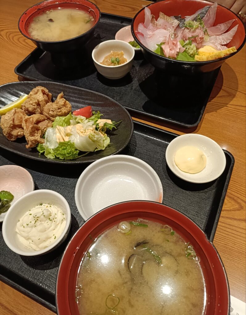 海鮮丼定食、唐揚げ定食。