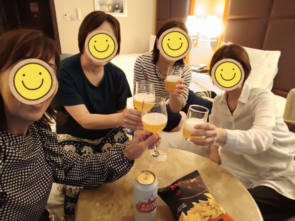 ホテル前のコンビニで買ったビール🍻とポテチで、乾杯〜〜〜!